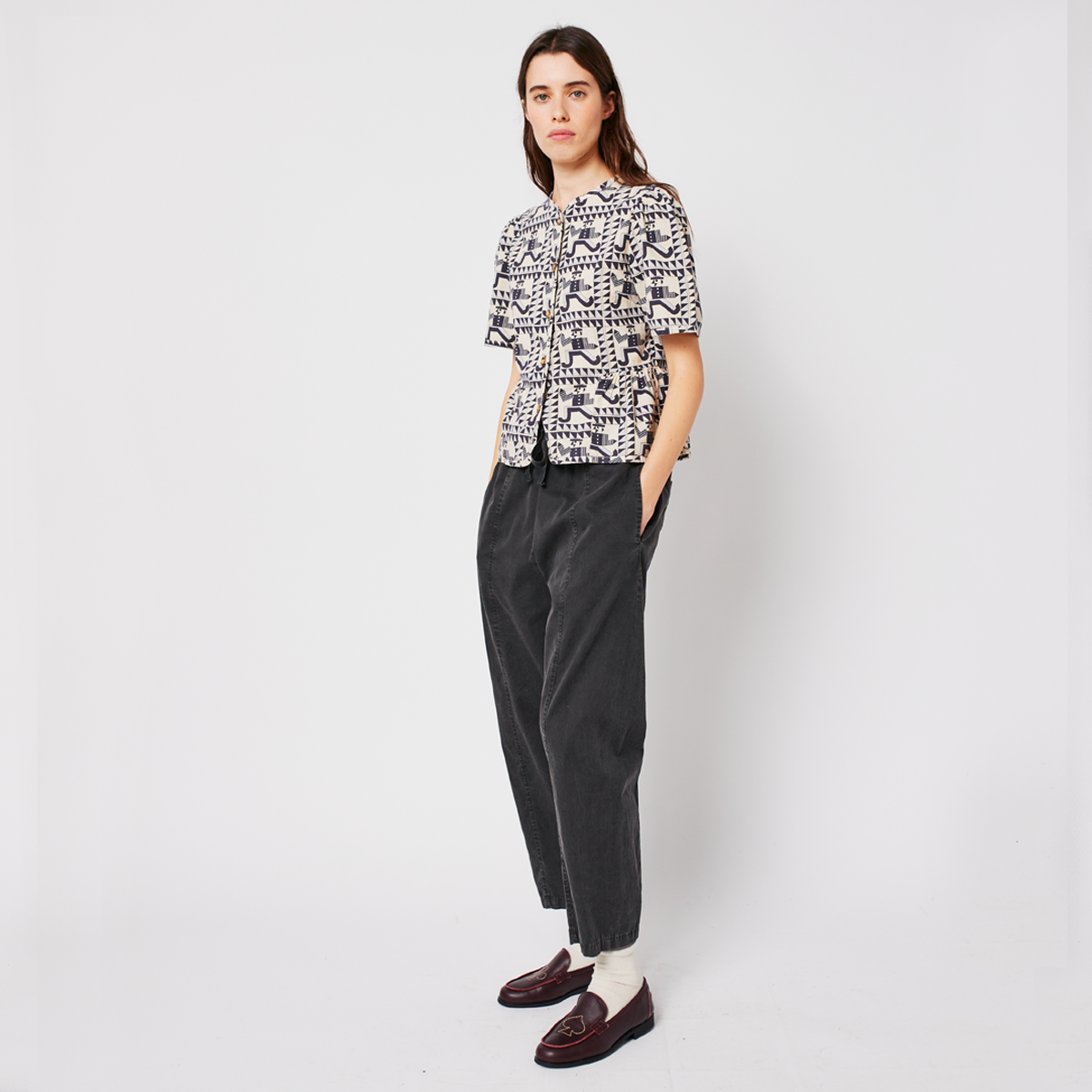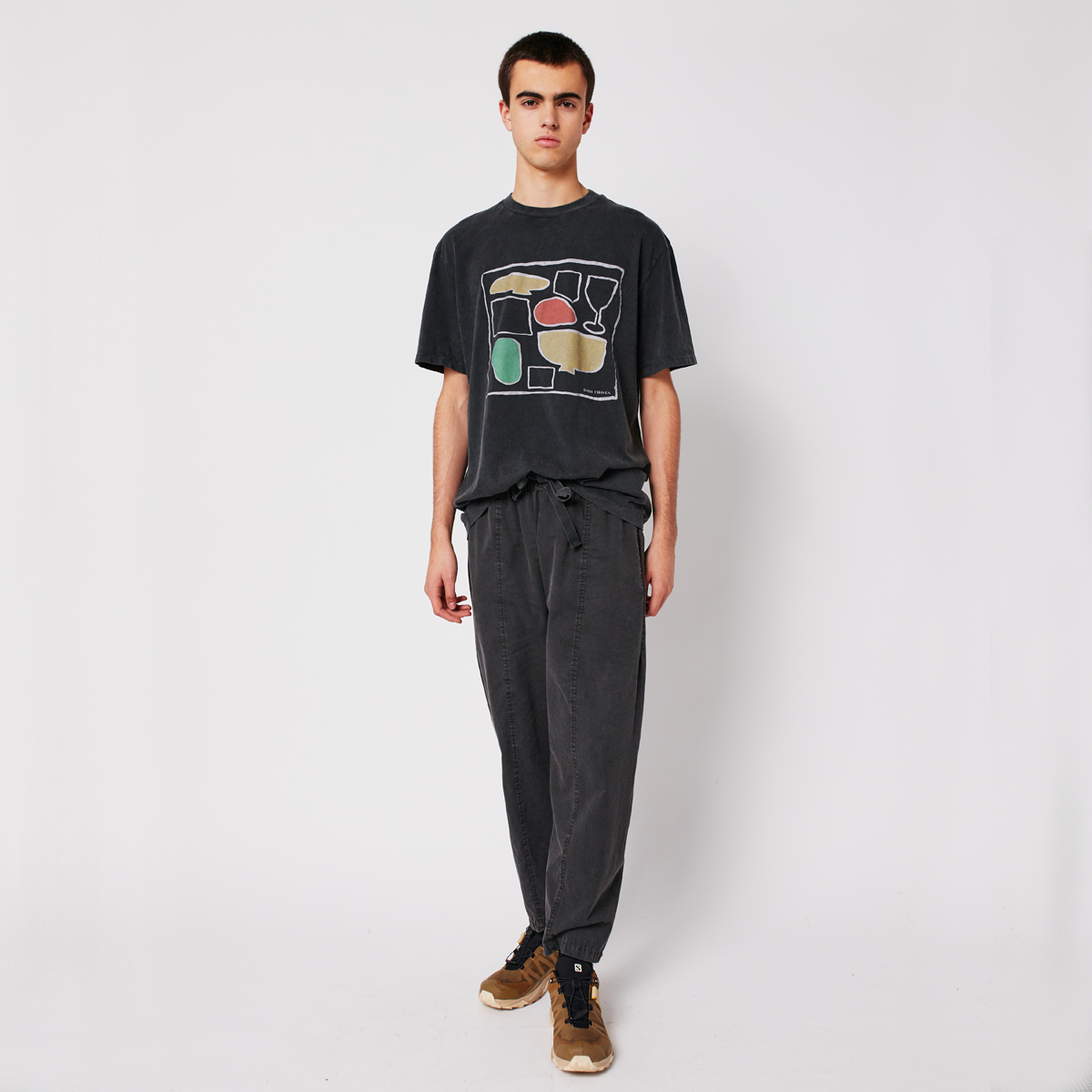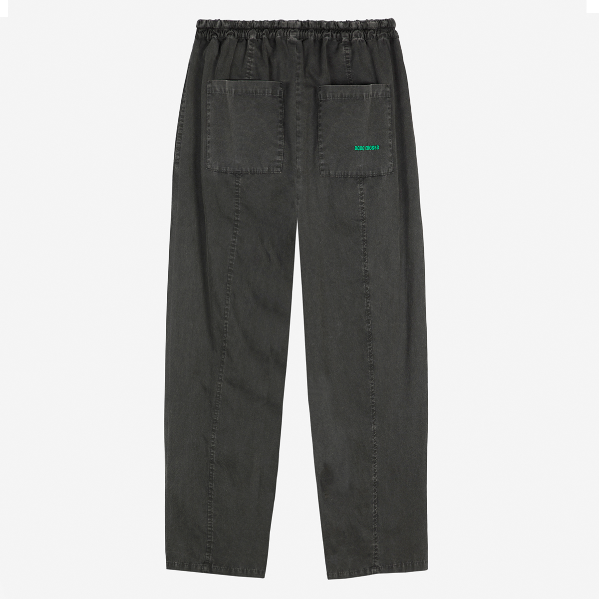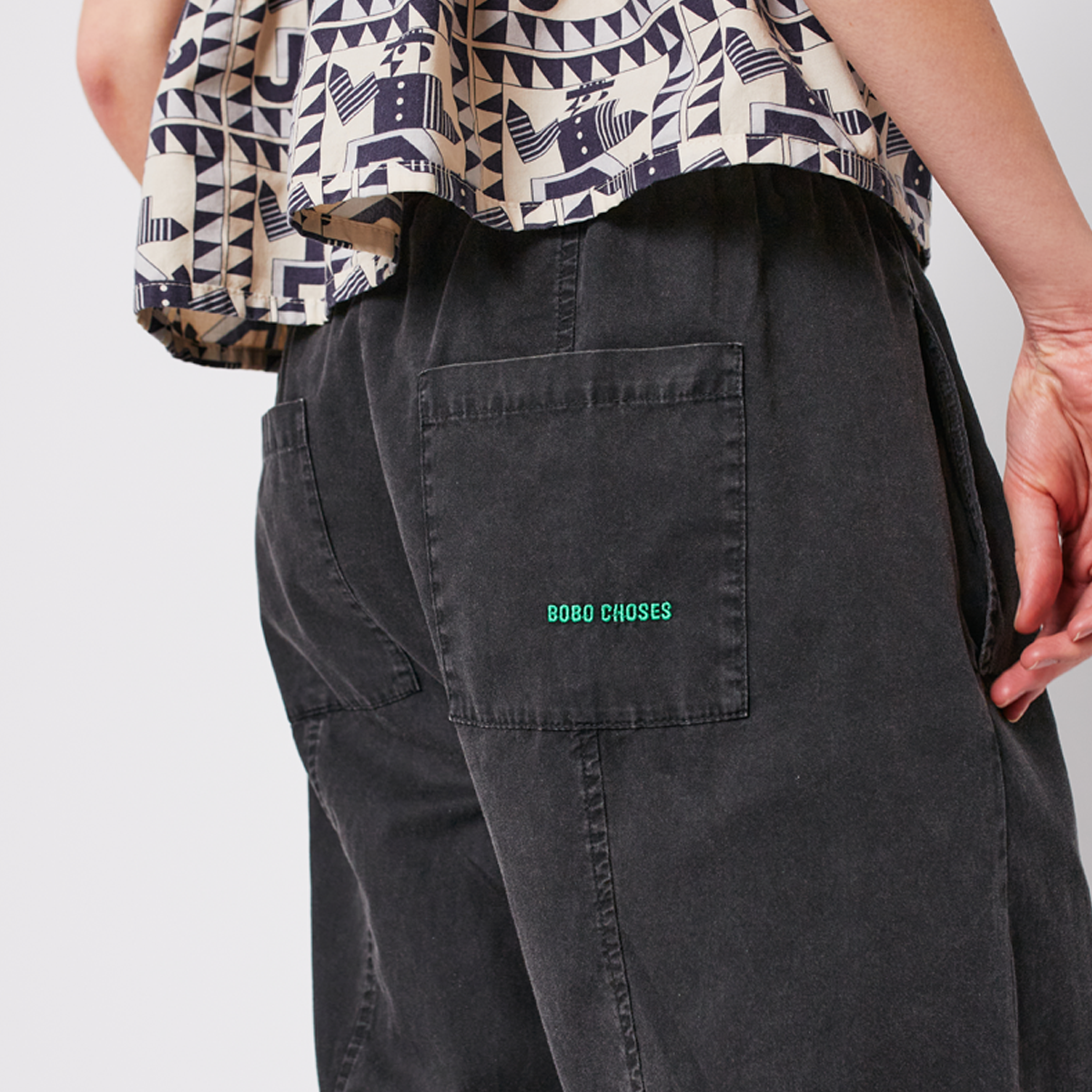 Dark heather grey pants. Designed with cropped length, mid-rise, slouchy / cocoon, elasticated at the waist for a flexible fit and non stretchy fabric. Fits true to size, take your normal size. Made in Spain.