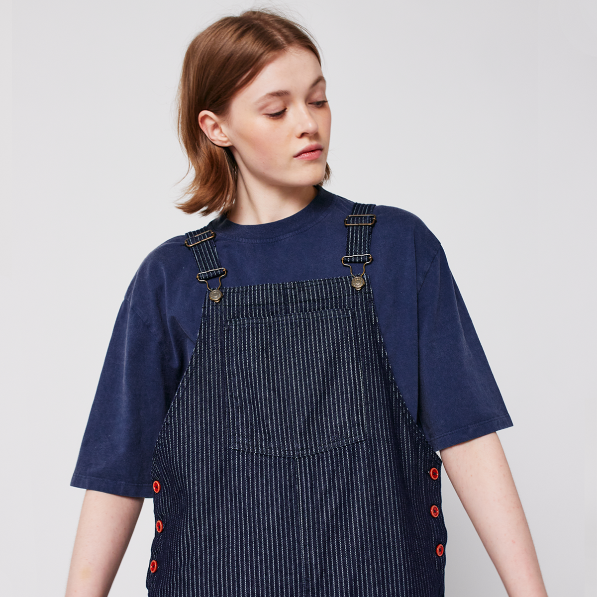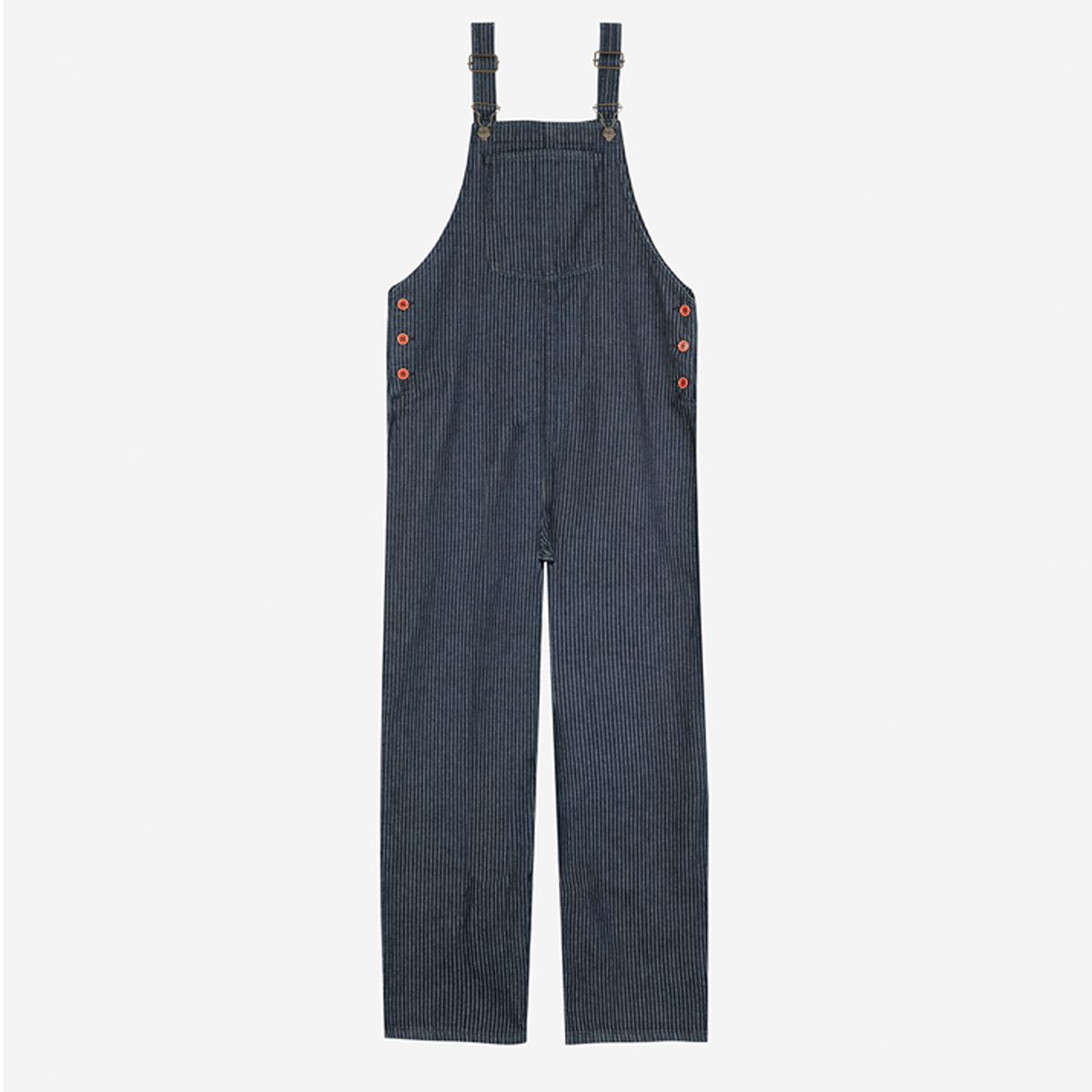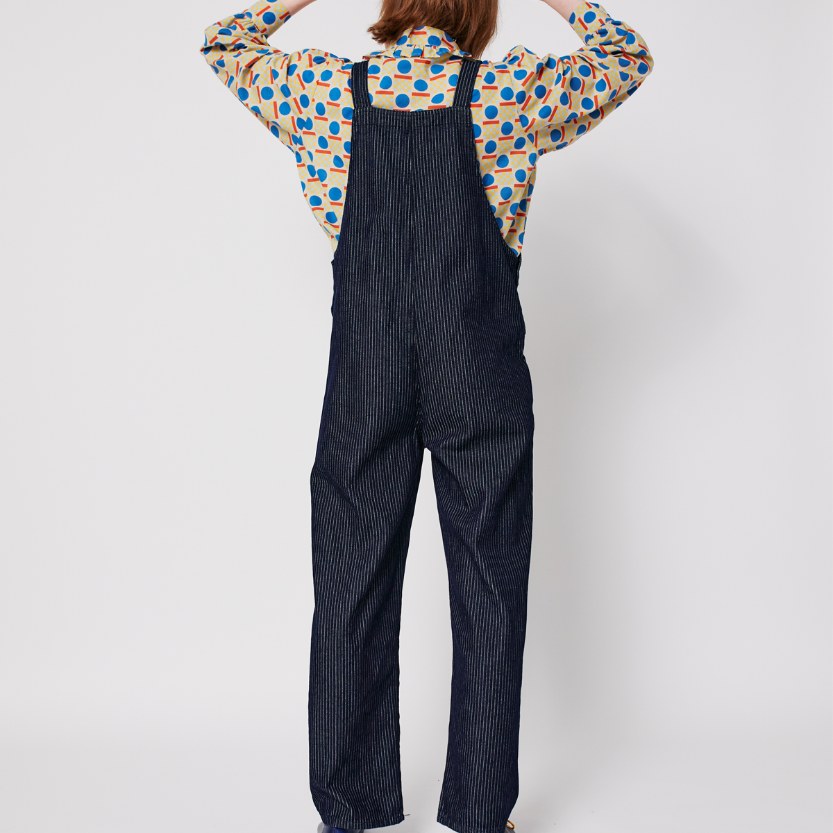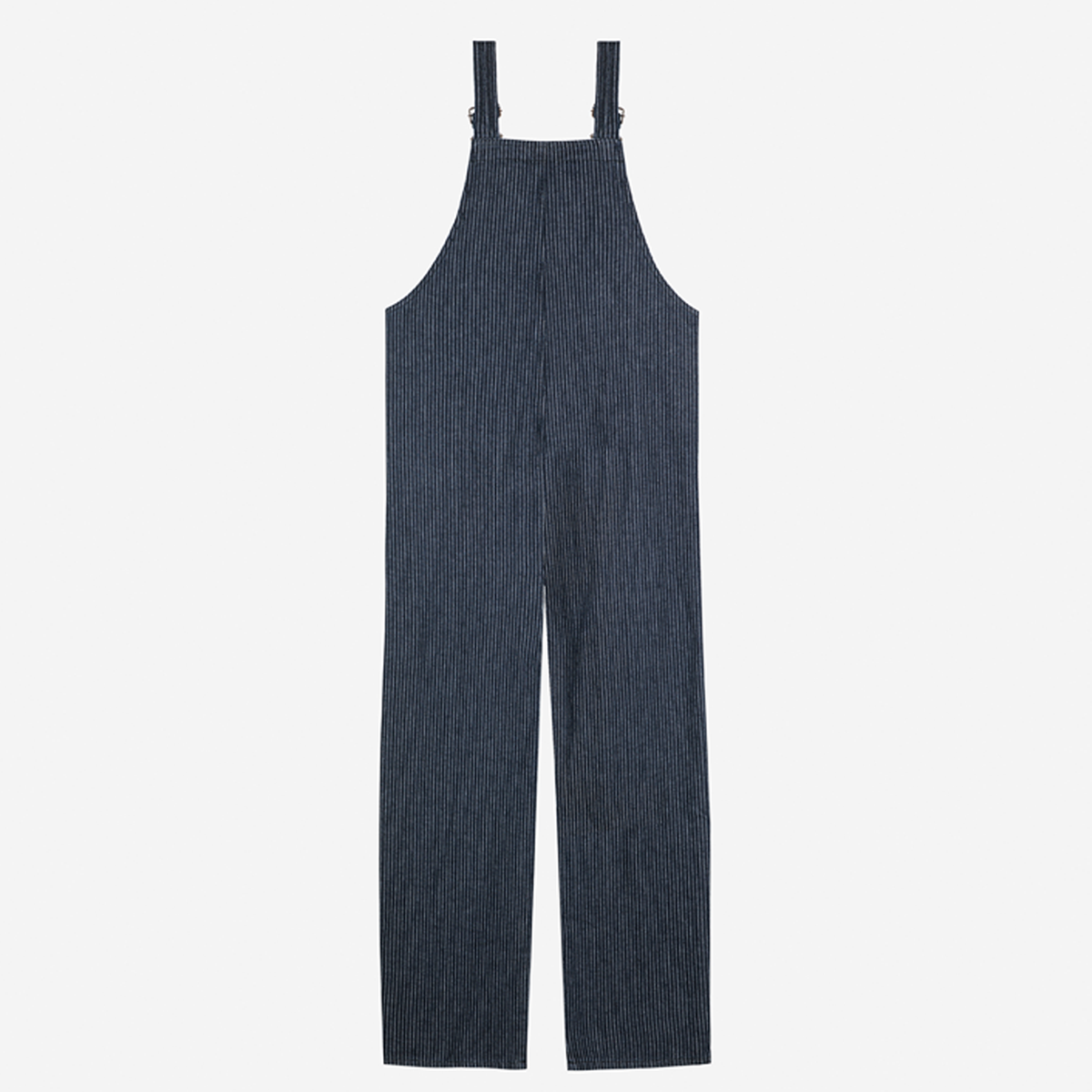 Navy blue overall. Designed with adjustable shoulder straps, designed for a comfortable fit, maxi length, non stretchy fabric and mid-weight fabric. Fits true to size, take your normal size. Made in Portugal.