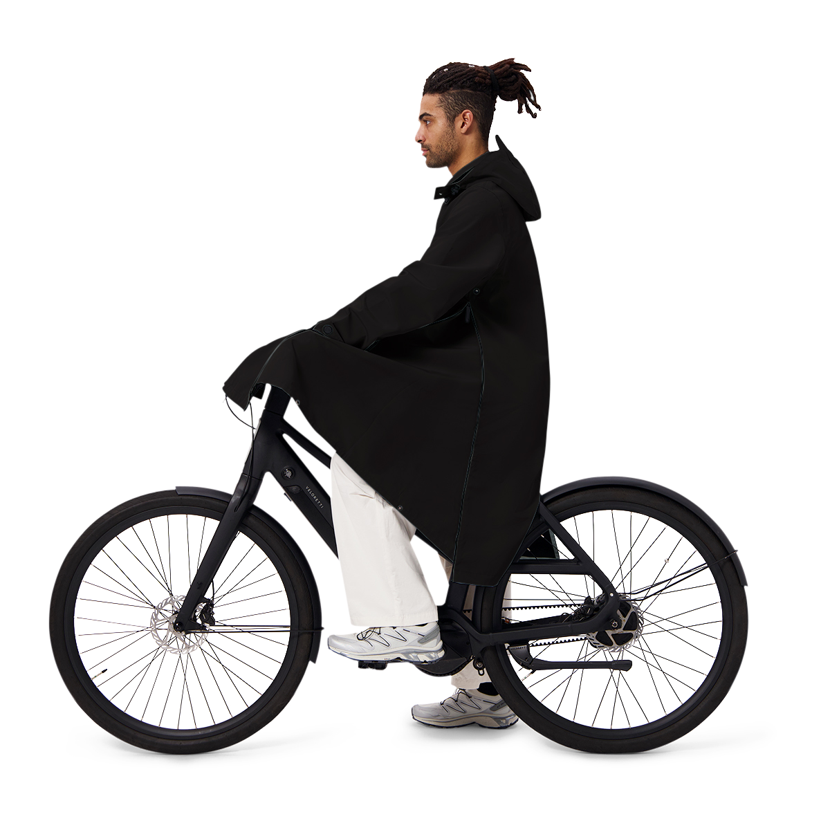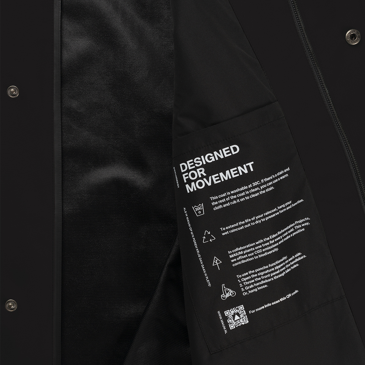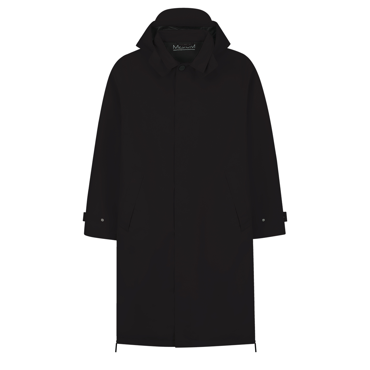 The Mac Coat is a fully waterproof raincoat and is designed for movement. Inspired by the traditional Macintosh coat from 1824, the first truly waterproof raincoat. A classic silhouette with a modern twist. Converts easily into a poncho for biking or e-scootering.