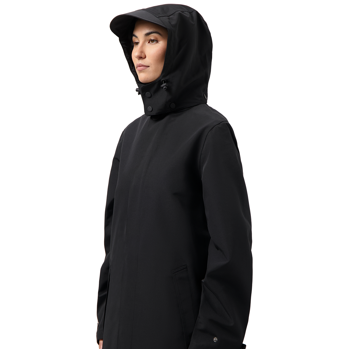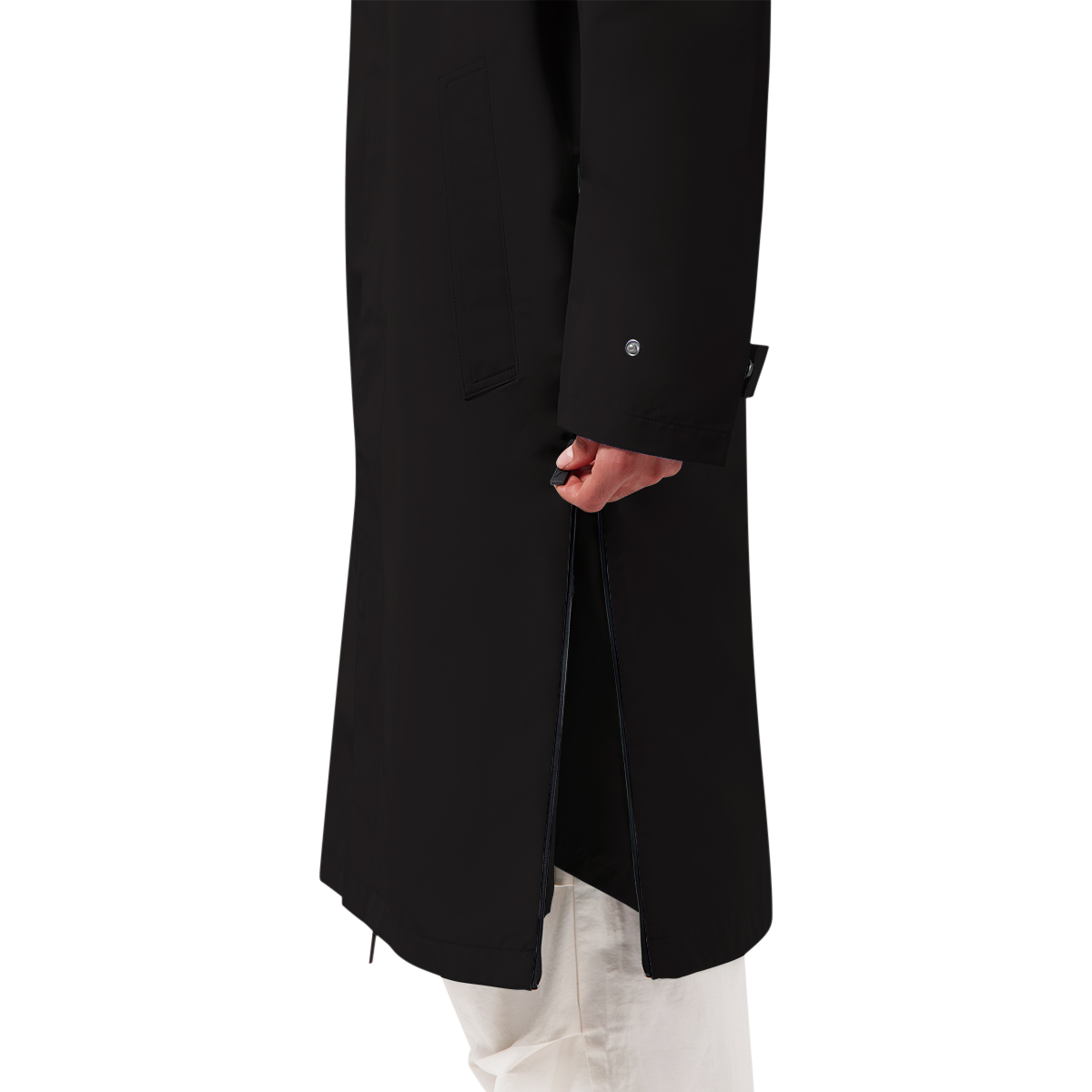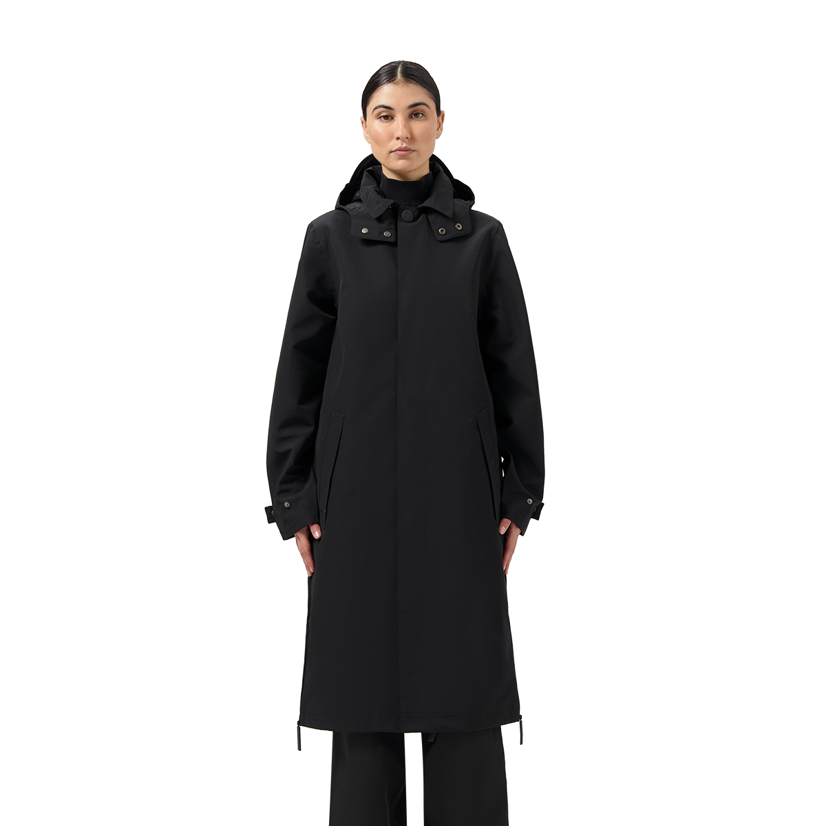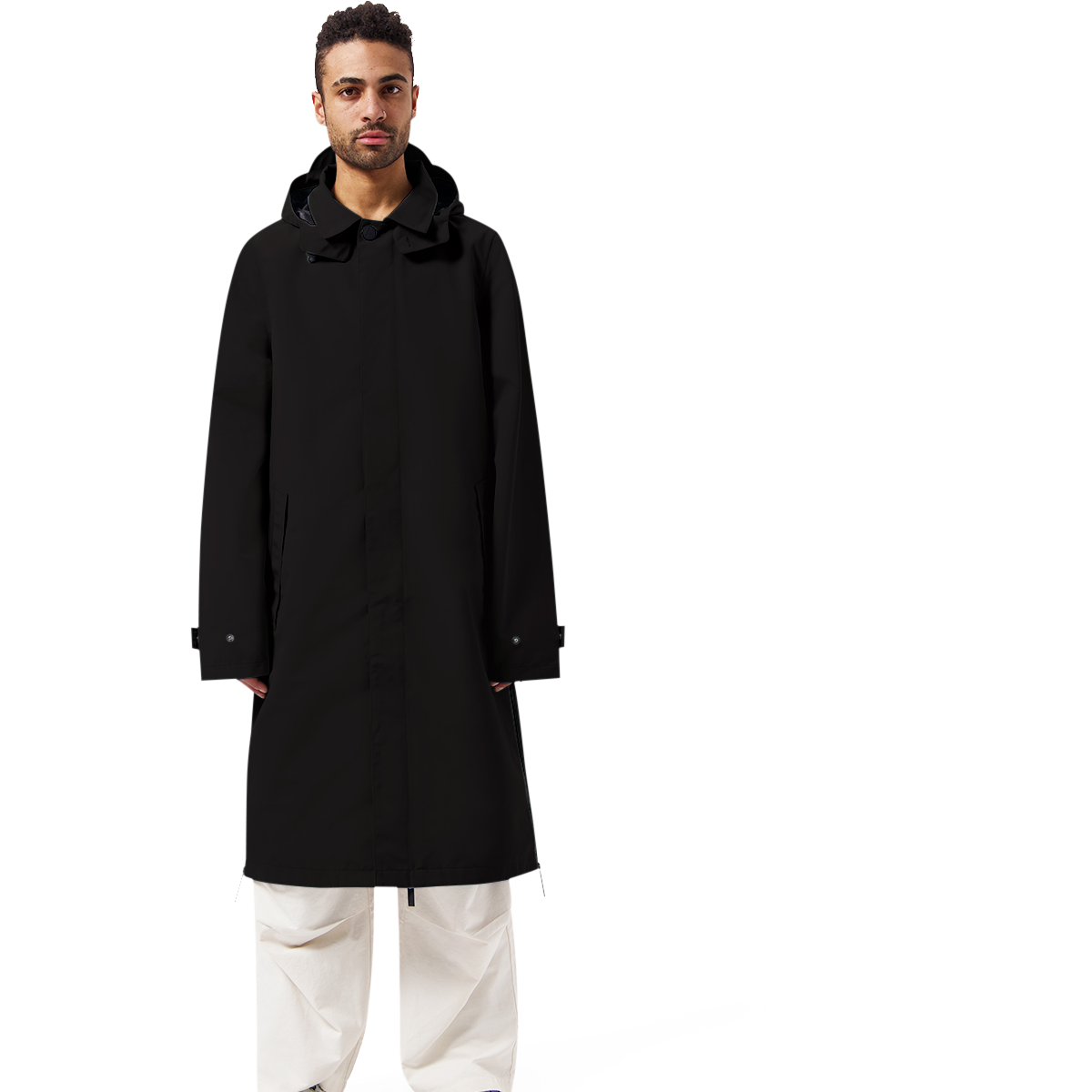 The Mac Coat is a fully waterproof raincoat and is designed for movement. Inspired by the traditional Macintosh coat from 1824, the first truly waterproof raincoat. A classic silhouette with a modern twist. Converts easily into a poncho for biking or e-scootering.