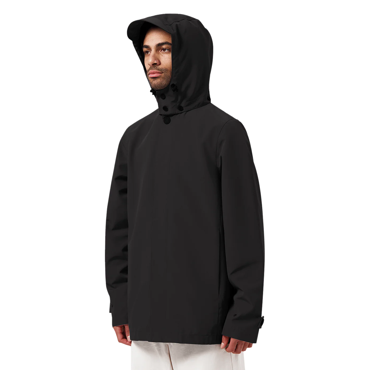 The Mac Short for men is a fully waterproof raincoat. Inspired by the traditional Macintosh jacket from 1824, the first truly waterproof raincoat. A classic silhouette with a modern twist. Made from 66 recycled PET bottles.