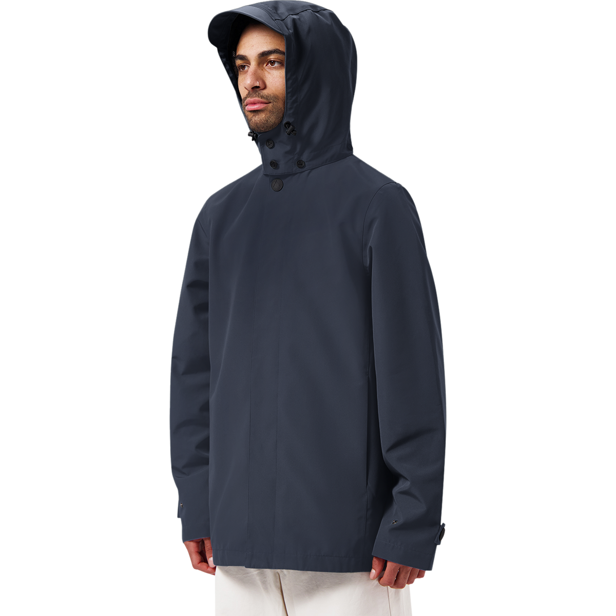 The Mac Short for men is a fully waterproof raincoat. Inspired by the traditional Macintosh jacket from 1824, the first truly waterproof raincoat. A classic silhouette with a modern twist. Made from 66 recycled PET bottles.