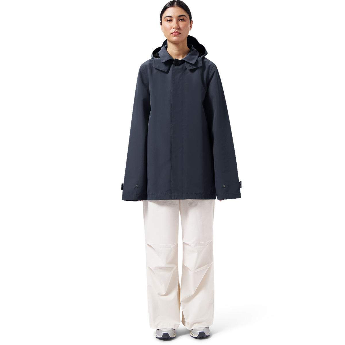 The Mac Short for Women is a fully waterproof raincoat. Inspired by the traditional Macintosh coat from 1824, the first truly waterproof raincoat. A classic silhouette with a modern twist. Made from 66 recycled PET bottles.