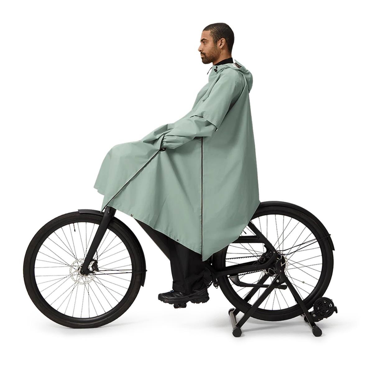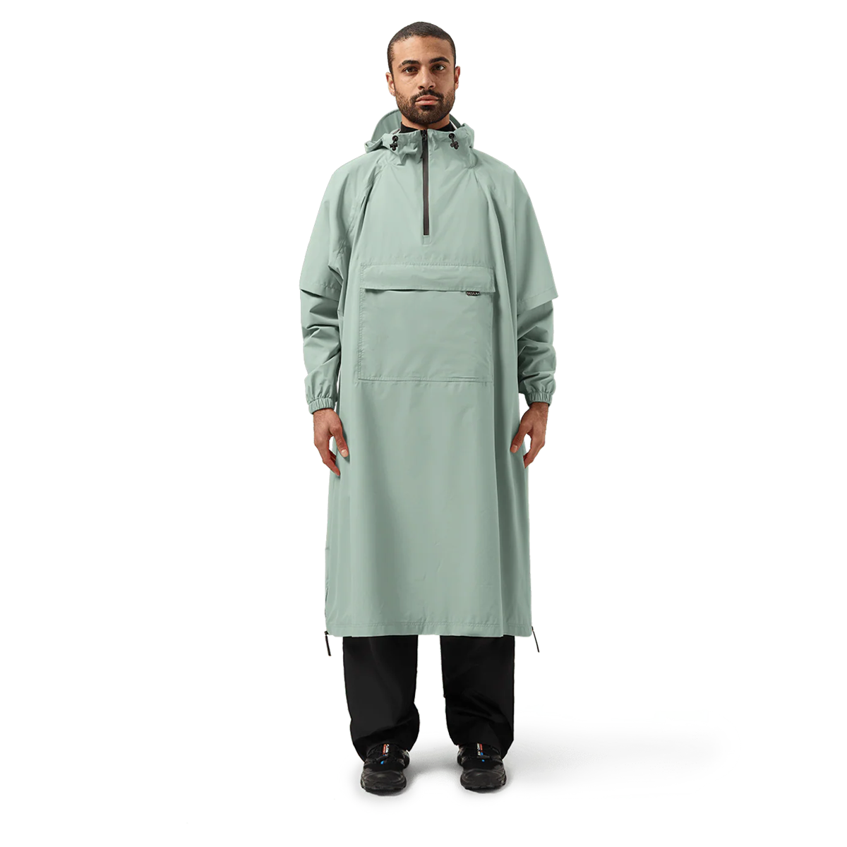 The Poncho for men is a fully waterproof raincoat. An extra waterproof layer always at hand. This raincoat folds easily into the built-in pouch. Easily converts into an even larger poncho for use on a bike or e-scooter.