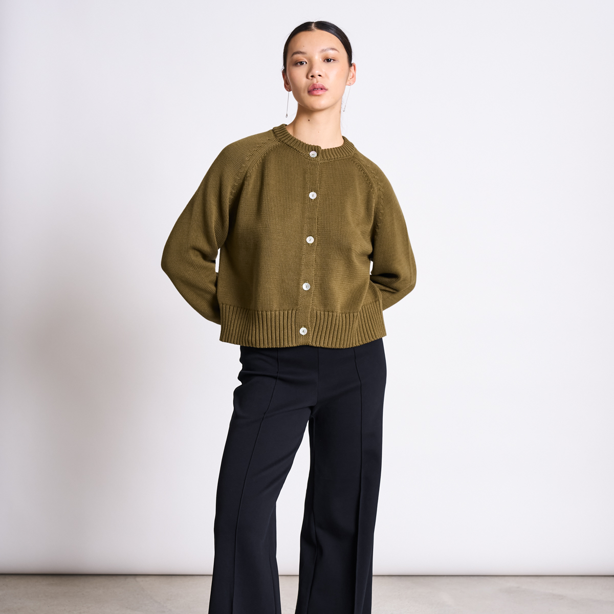 This soft and oversized cardigan is perfect for lounging or layering. With a slightly cropped fit and round neck, it's both comfortable and on-trend.