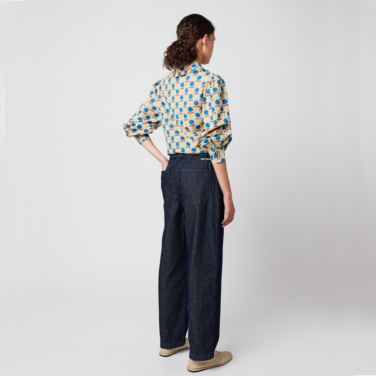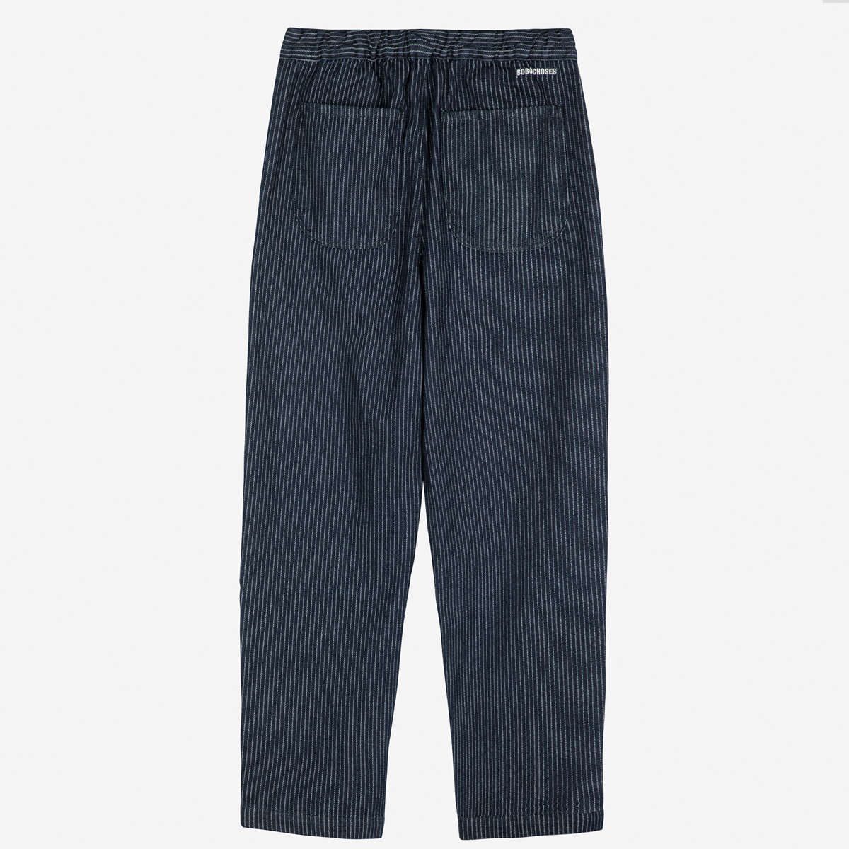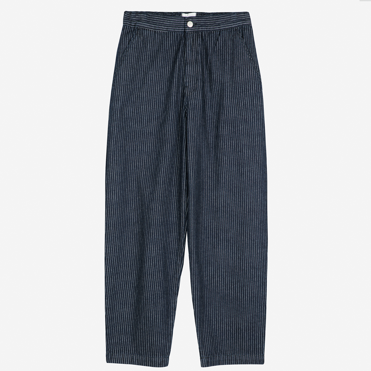 Navy blue pants. Designed with cropped length, mid-rise, slouchy / cocoon, elasticated at the waist for a flexible fit and non stretchy fabric. Fits true to size, take your normal size. Made in Portugal.