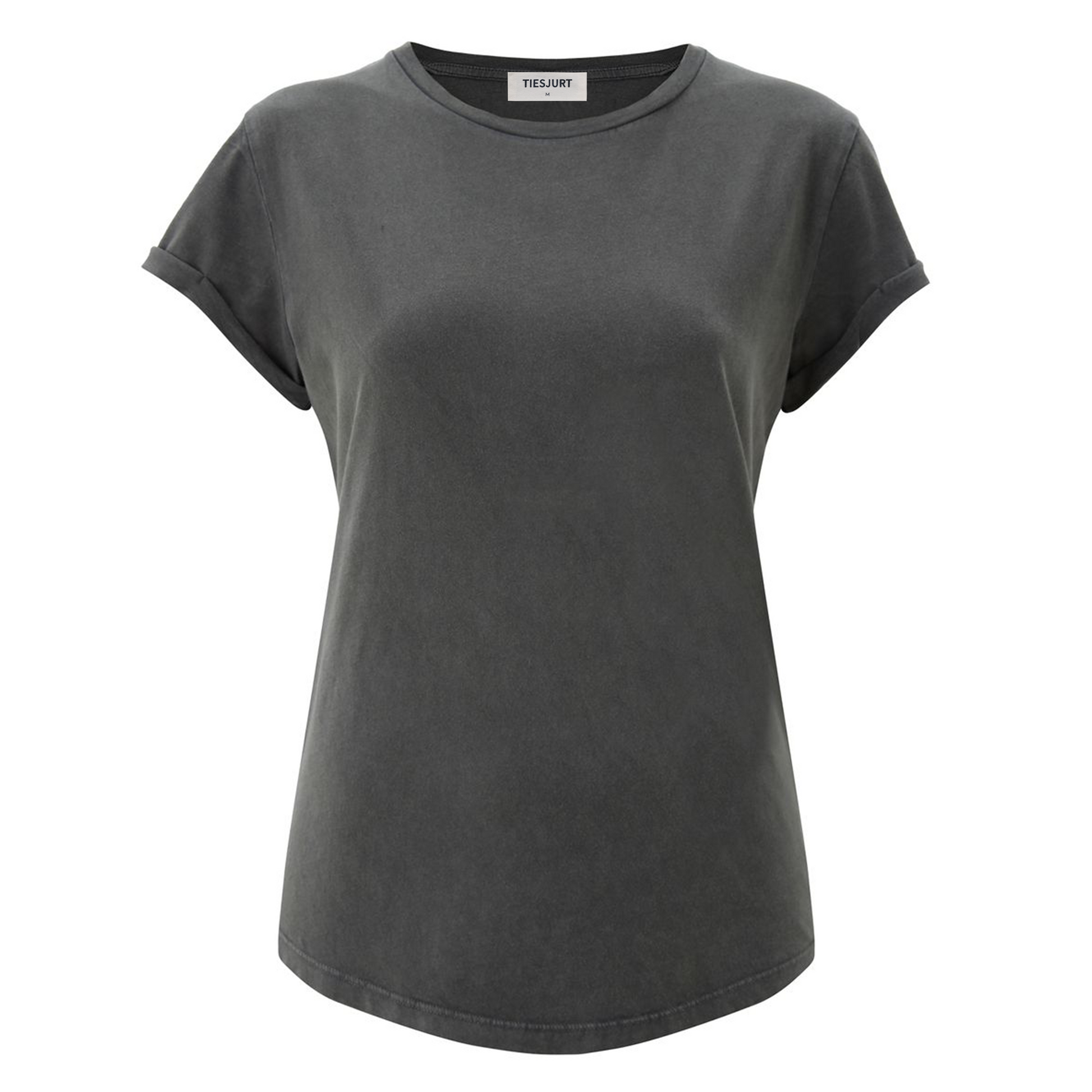 Women stone washed t-shirt with rolled sleeves